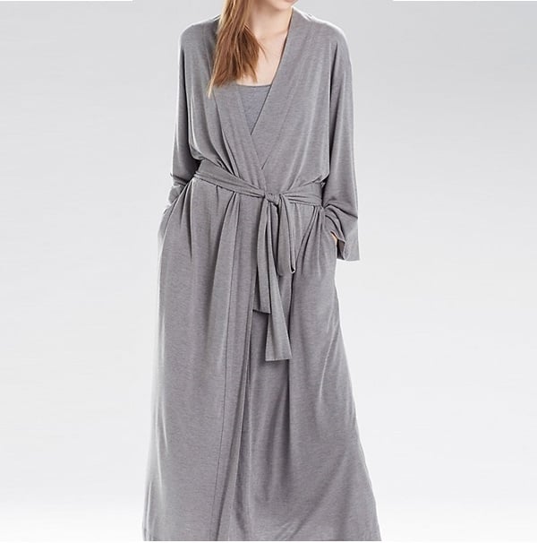 Best travel robe for long arm and long leg coverage. Women's tall lightweight bamboo jersey wrap bathrobe. Perfect for daily wear or travel has long sleeves and matching belt, side seam pockets. Easy care machine washable, lightweight stretch jersey knit bamboo mix blend.